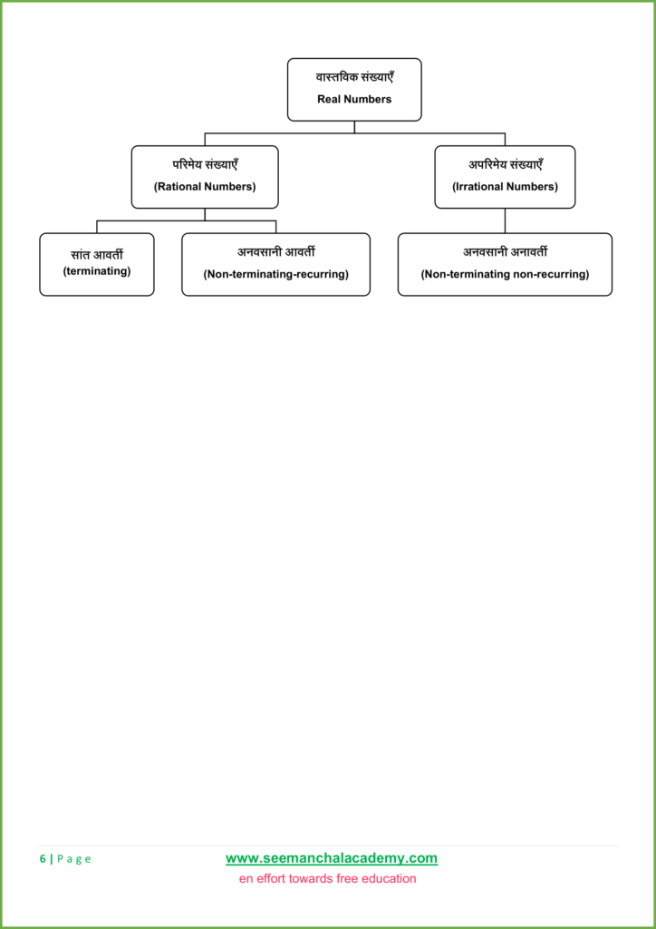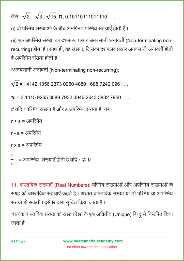 वास्तविक संख्याएँ, परिमेय संख्याओं (Rational Numbers) और अपरिमेय संख्याओं (Irrational Numbers) का संग्रह है ।