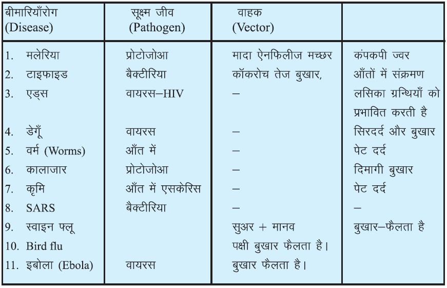 | 4. | प्रोटोजोआ (Protozoa) | मलेरिया, कालाजार, अमीबिय पेचिस |
